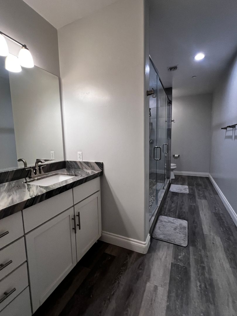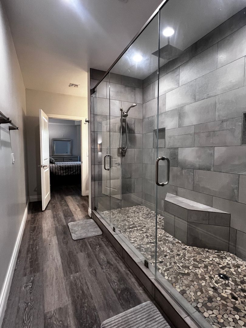 Master suite with custom oversized shower